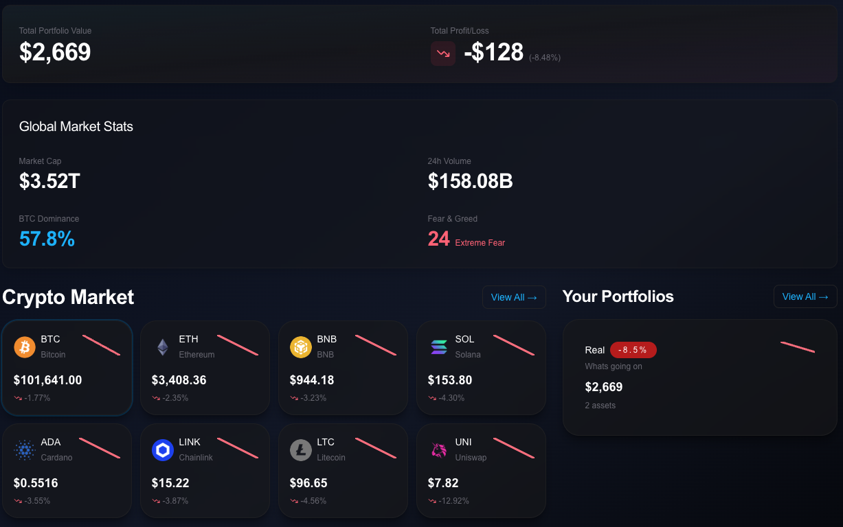 DigiAssets is a full-stack cryptocurrency portfolio management platform that enables users to track investments, monitor market trends, and analyze performance, all through an intuitive dashboard and a powerful AI-driven assistant (coming soon). DigiAssets delivers a seamless and secure experience for crypto enthusiasts and investors. It combines real-time market data, detailed portfolio analytics, and a soon-to-be-released AI insights module designed to provide smarter, automated portfolio analysis.
