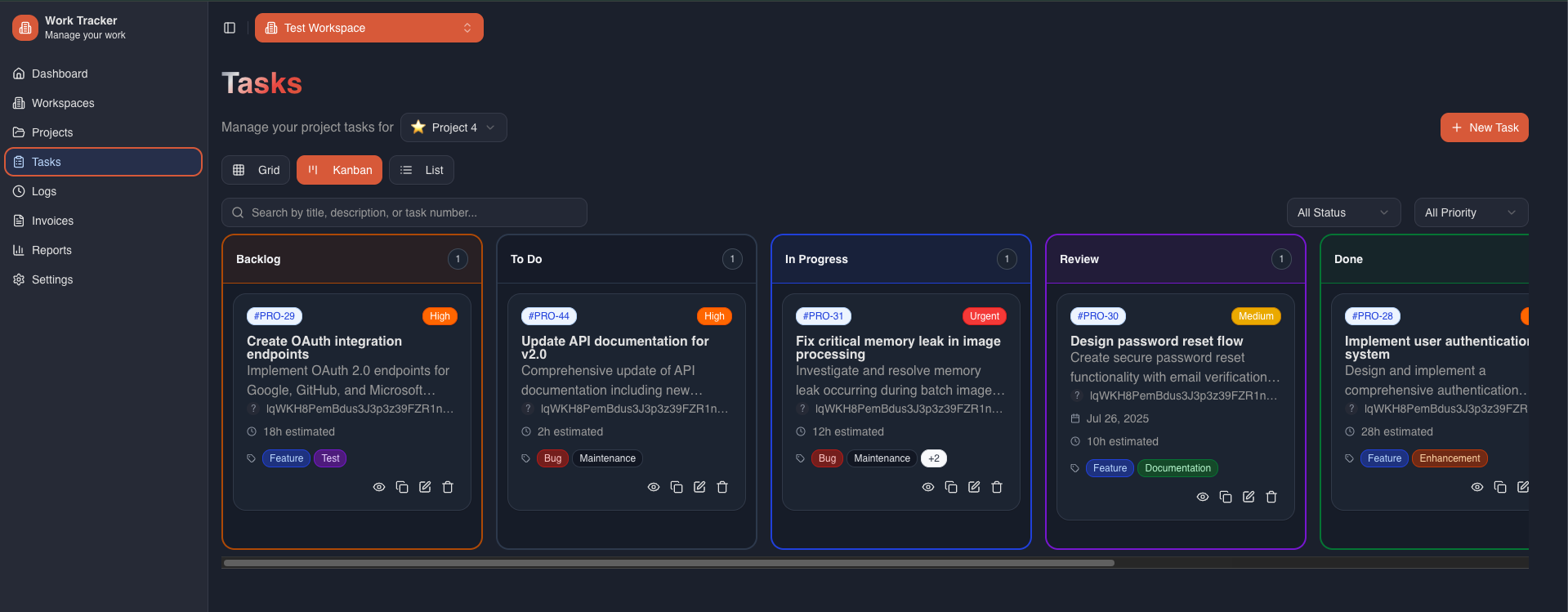 WorkTracker is a comprehensive project management and time tracking web application designed to streamline team collaboration and productivity monitoring. Built with Next.js 15, TypeScript, and Firebase, the platform enables users to create and manage multiple workspaces, organize projects with task workflows, track time through manual entries and timers, and collaborate with team members through role-based access control. The application features a modern UI built with Tailwind CSS and Radix UI components, offers multiple task view options (Grid, Kanban, List), includes real-time updates via GraphQL with Apollo Client, and provides comprehensive project analytics and reporting capabilities. The tech stack also incorporates Firebase Authentication for secure user management, Firestore for real-time database operations, and custom components for enhanced user experience, making it a full-featured solution for teams seeking efficient project and time management tools.